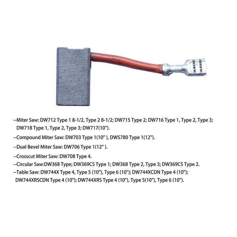 Restores life to your DW718 DW718 / DWS780 / DW717 Miter Saw. Carbon motor brushes comes complete with wire lead and connection terminal. International products have separate terms, are sold from abroad and may differ from local products, including fit, age ratings, and language of product, labeling or instructions. International products have separate terms, are sold from abroad and may differ from local products, including fit, age ratings, and language of product, labeling or instructions.