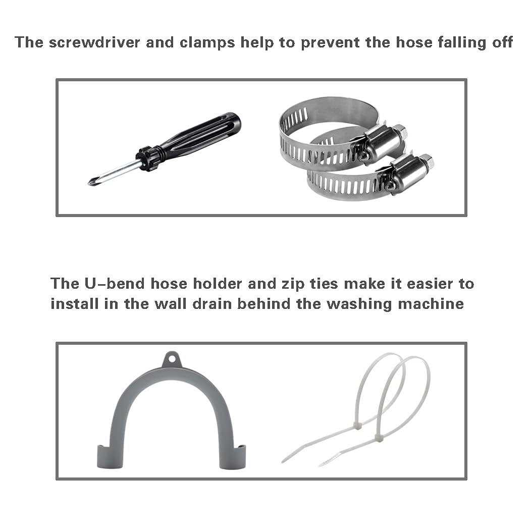 ALL-IN-ONE:This is All-in-one extended drain hose kit. – It includes 1 pc 6 feet hose,1 pc extension adapter, 2 pcs stainless steel clamps, 1 pc U-bend hose holder,1 pc screwdriver and 2 zip ties. – No extra tools required.. DURABLE & FLEXIBLE:Made of industrial-grade polypropylene with more durability,this washer discharge hose is a corrugated hose, more flexible and no kinking. – Fits snugly, no leaks. – The clamp is made of 304 stainless steel and is durable and resistant to rust.. UNIVERSAL FIT:6 ft dishwasher drain hose for automatic front loading washers with outlet diameters from 1-1 / 5″ (30 mm). The adapter has a diameter of 21 mm /0.8 inch and is suitable for most washer hoses that are directly 20 mm inside. Fitted with 18-32 mm clamps for a stronger connection.. EASY INSTALLATION:Simply insert the forming outlet into the end of the washing machine drain hose without any tools. If you are using it for an extended hose, just connect the adapter and connect them without removing the previously connected drain. For even more fixing, you can also add a clamp. – The U-bend hose holder and zip ties make it easier to install in the wall drain behind the washing machine..,,TT FLEX