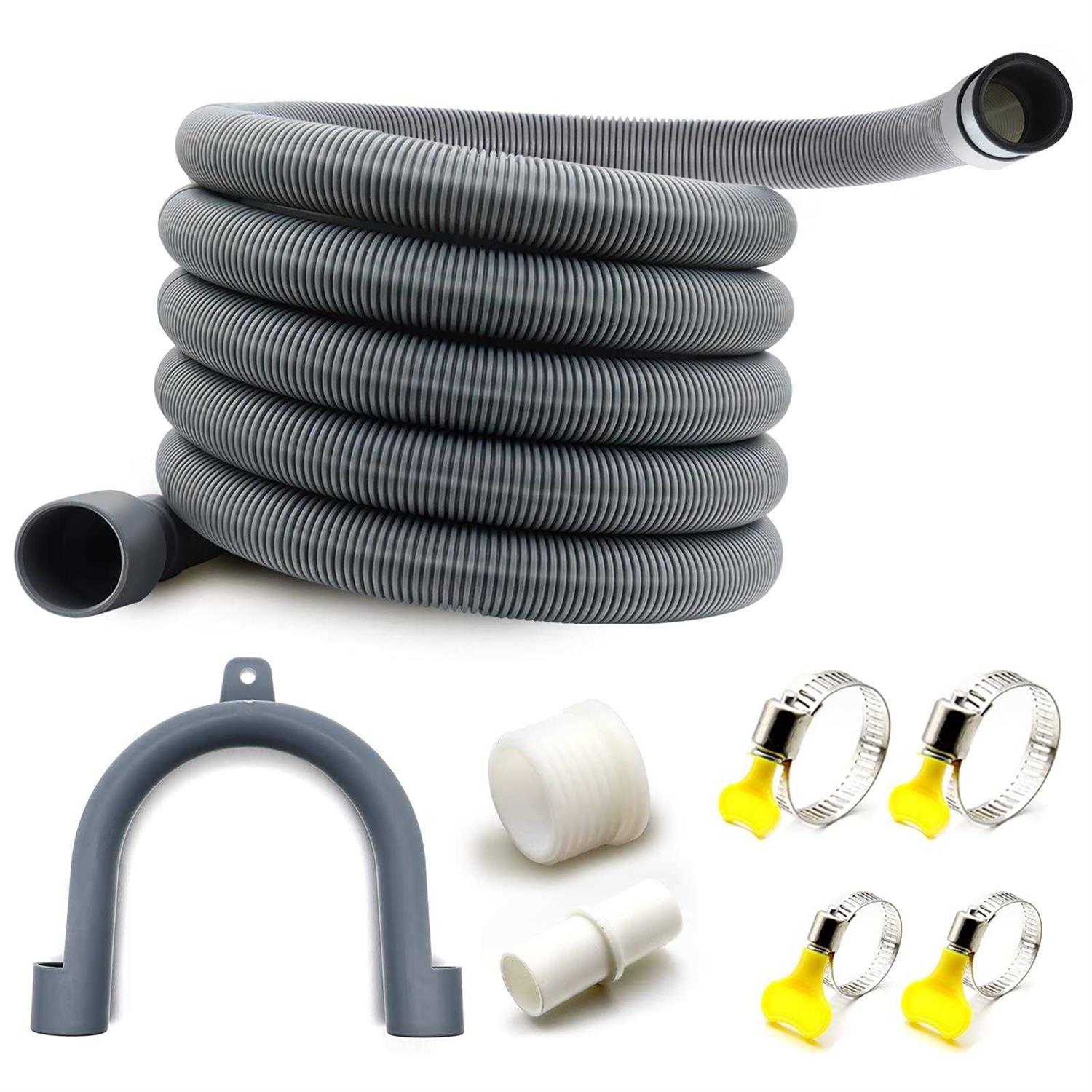 【 Extended Drain Hose Kit】 The drain hose kit includes 16.4 feet (4 m) hose, extension adapter and four clamps U-Bend Hose Holder, One Sewer Sealing Ring. If your home washing machine drain and dehumidifier hose or dishwasher drain hose is not long enough, or you need to replace the drain, you can choose our drain hose. Our drains are suitable for most dishwasher/ Portable Washer/ Sink/ Dryer/ most front loading washing machines. 【 Premium Material 】 This Universal Drain Hose Extension Kit is durable, and the ultra-flexible drain hose is made of premium Environmental protection PP material, Durable and flexible corrugated construction, high pressure resistant, non-toxic and anti-aging, which is flexible and not easily deformed, ensure the unobstructed draining. The clamp is made of 304 stainless steel and is durable and resistant to rust. 【 Universal Size 】 The whole drain hose length measures 5 meters/ 16.4 feet for universal roller machine with inner diameter 30 mm/ 1.2 inch connector. The white adapter has a diameter of 21 mm/ 0.8 inch and is suitable for most water pipes that are directly 20 mm inside, fitted with 18-38 mm clamps for a stronger connection. U-Bend holder helps move and clip hoses to firmly hang in anywhere. 【 Perfect Combination 】 The end of the washing machine drain hose fits perfectly with the washing machine outlet. The extended adapter also allows the two tubes to be perfectly combined, without tools, and can be safely connected without worrying about leaking or flooding. If you are using it for extended hose, simply connect the adapters and connect them without removing the previously connected drain. For even more fixing, you can also add a clamp.