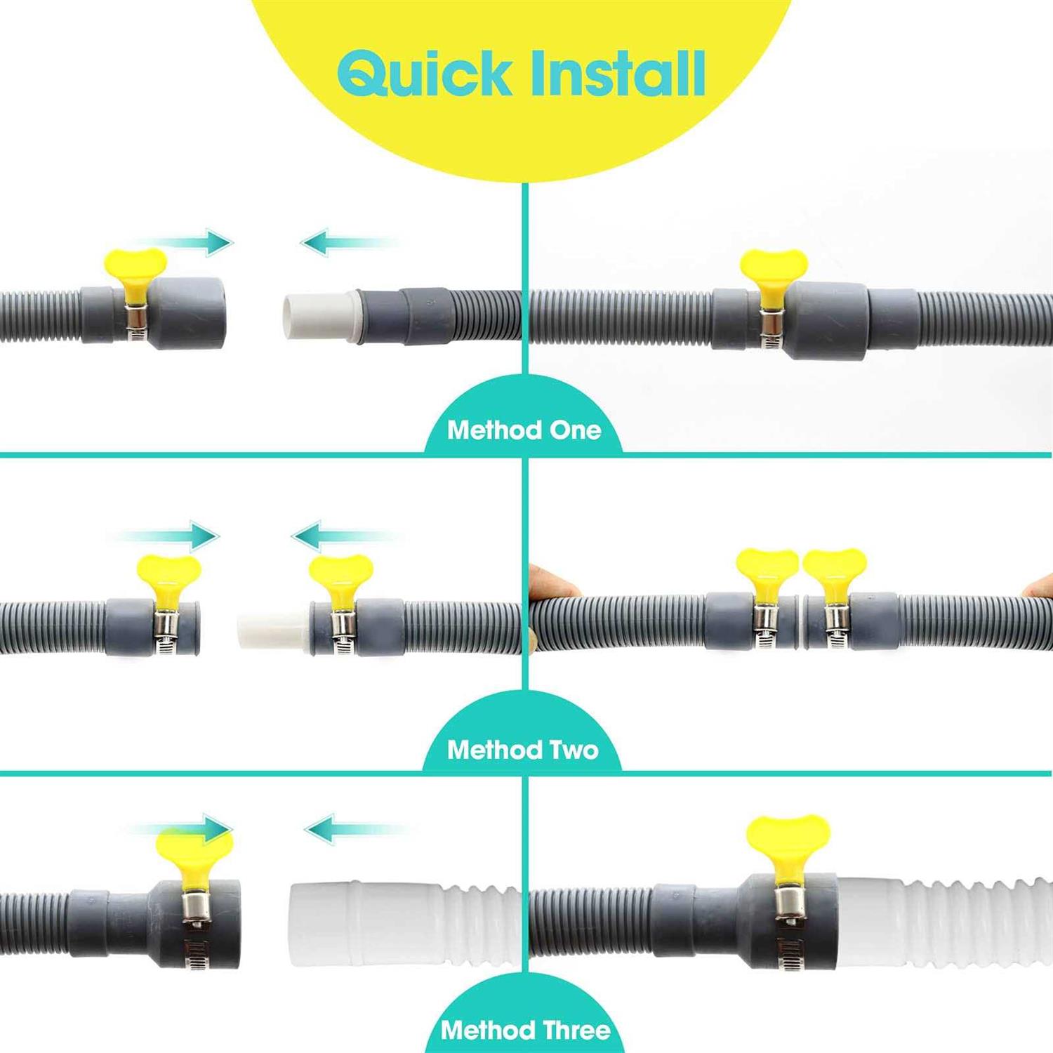 Universal Washing Machine Drain Hose Flexible Dishwasher Drain Hose Extension Kits Corrugated Washer Discharge Hose,1Extension Adapter and