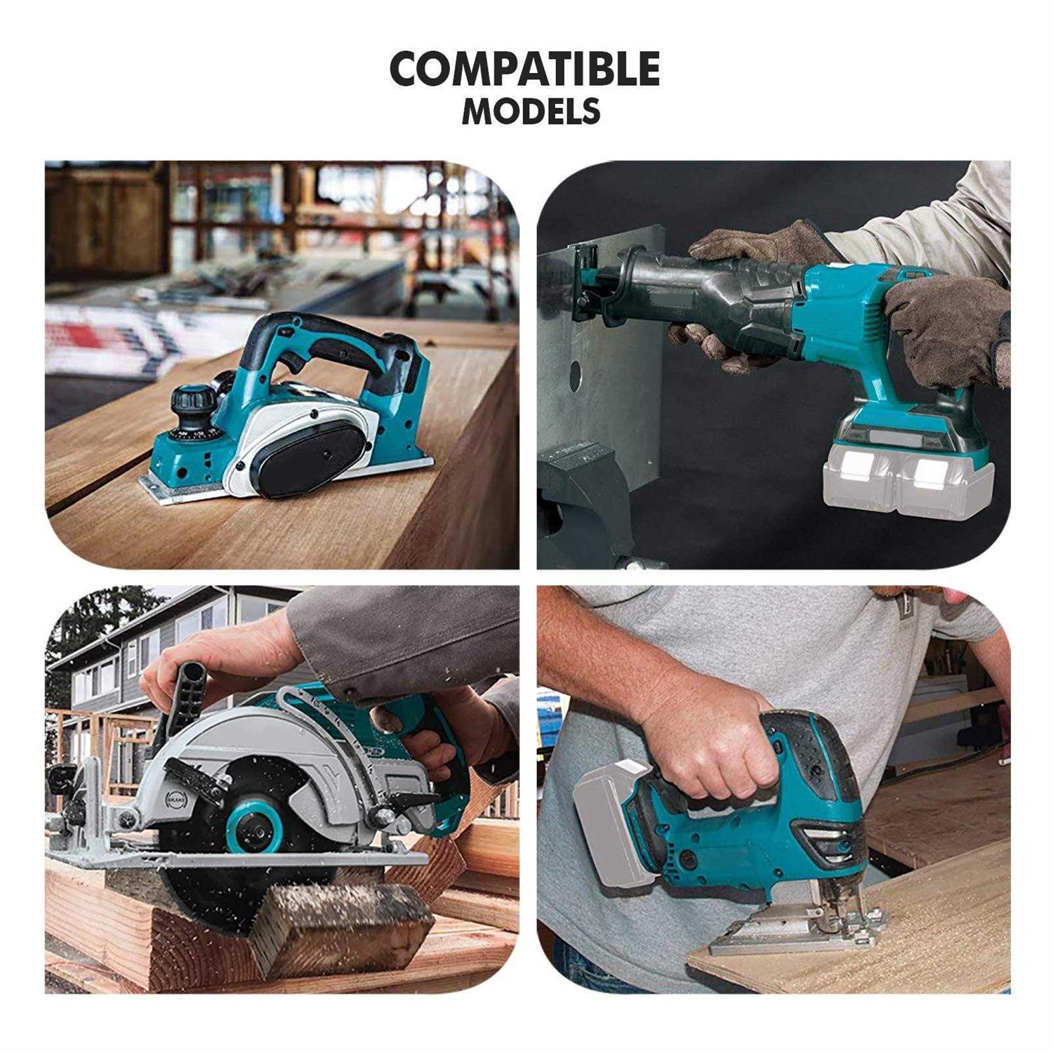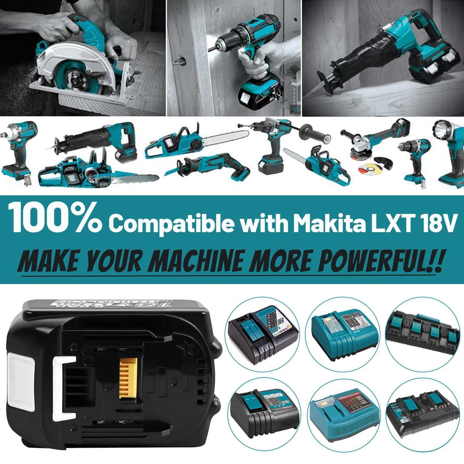【Works Same as Makita 18V LXT】18V | Actual 6.0Ah | A-Grade Lithium-ion battery provides up to 3X longer run time. 45% more than standard 18V LXT batteries. Same size and function as original. 【Compatible with Makita 18V / 36V and Seamless Fit】100% suitable for 18V chargers and 18V / 36V (18V * 2) tools. (Great for LXT systems.) + Compatible with all 18V batteries BL1815 / BL1830 / BL1850B / BL1820B / BL1840 / BL1845 / BL1860B… 【4 LED Indicators & Fast Charging】Charge faster, when you press the button, 4 LED indicators show the battery charging and usage level. 【Smart Protection】Built-in circuit protection ensures safety and stability. + No memory effect, can be stored, charged or discharged as needed without loss of capacity. (CE / ROHS / PSE certified.) 【What you will get?】 } With the exception of the chain saw (DUC353), this battery can be used with all makita 18v tools.