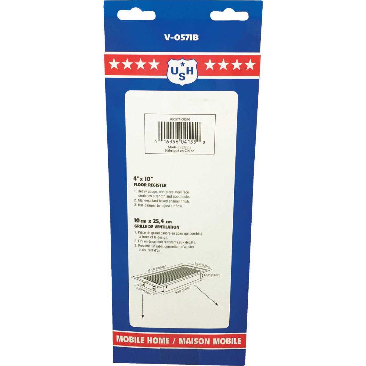 The American Hardware Mobile Home 4″ x 10″ Floor Register, #V-057IB, helps you to adjust the airflow rate in your rooms for keeping warm. It weighs just 1.335 lbs to be easy to carry and install. This brown floor register is simple to coordinate with your existing room decor thanks to its neutral color. It’s made from steel to be strong enough to hold up to lots of regular use. At 4″ x 10″ it’s easy to set up in most home register holes. The depth of 1-5/16″ means that you can install the unit in thinner floors.