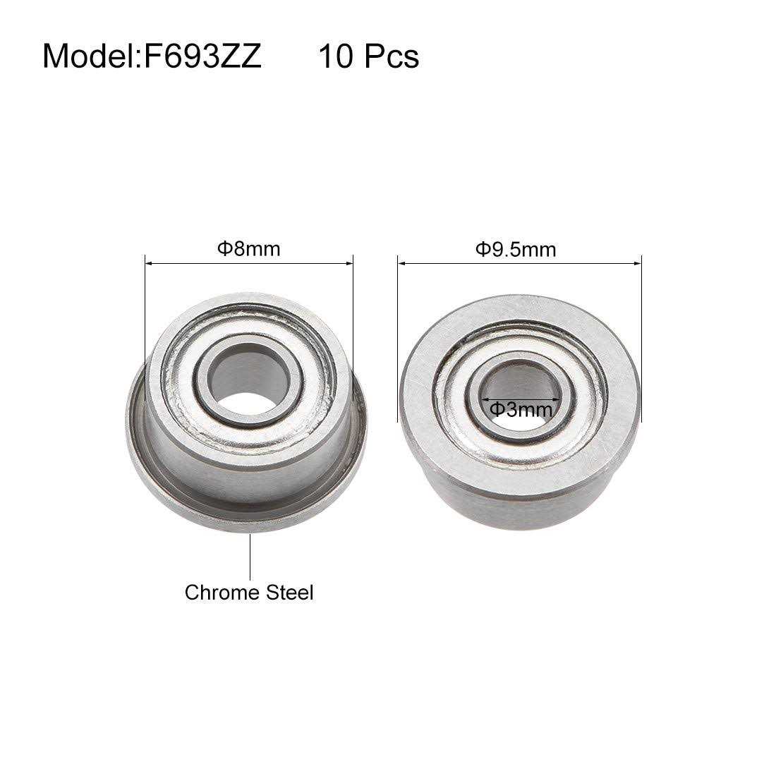 Uxcell Flanged Ball Bearing Shielded Chrome Bearing | Harfington, 3x8x4mm / 10pcs