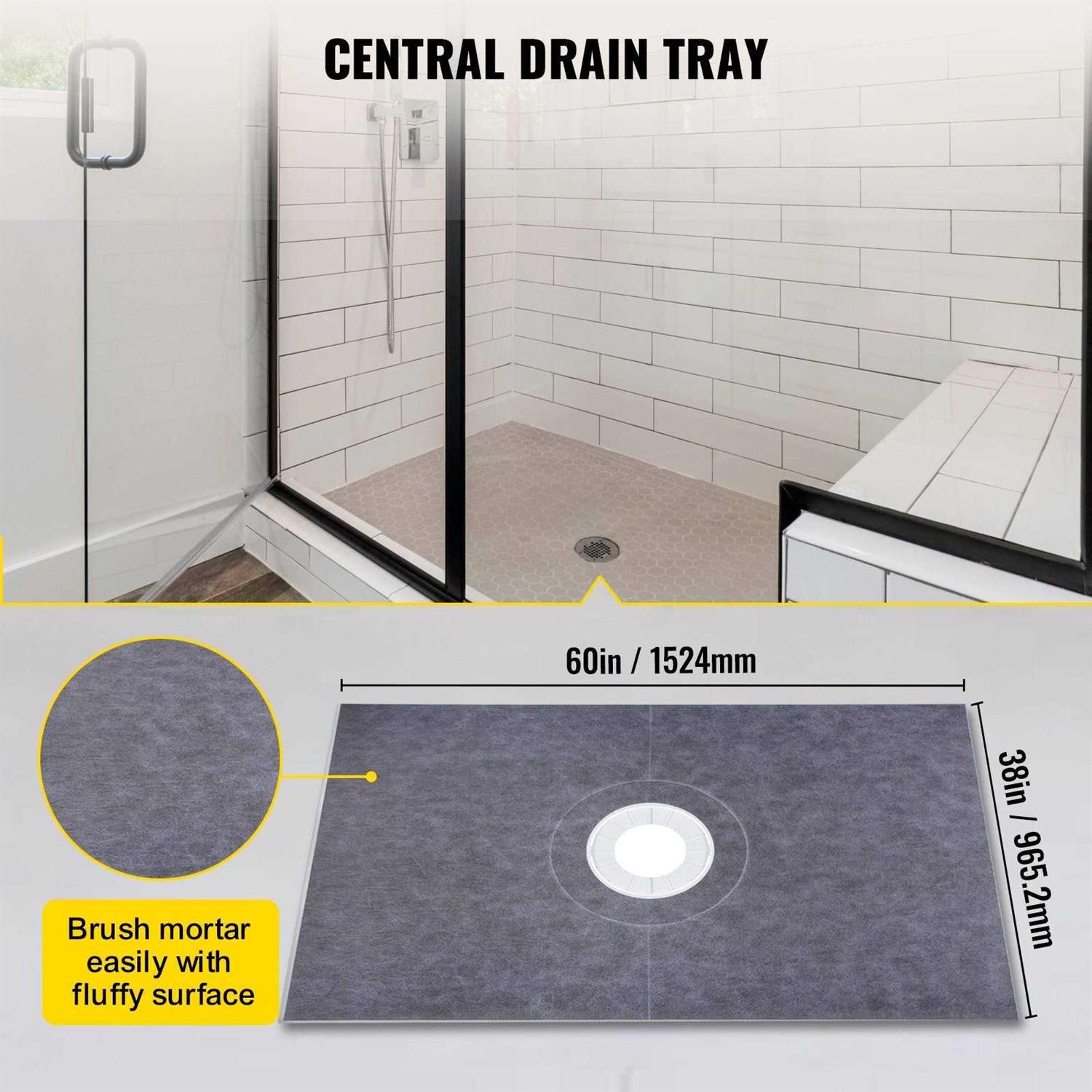- Vevor 38”x60” Waterproofing Shower Kit Shower Kit Tray With Central Drain Pvc