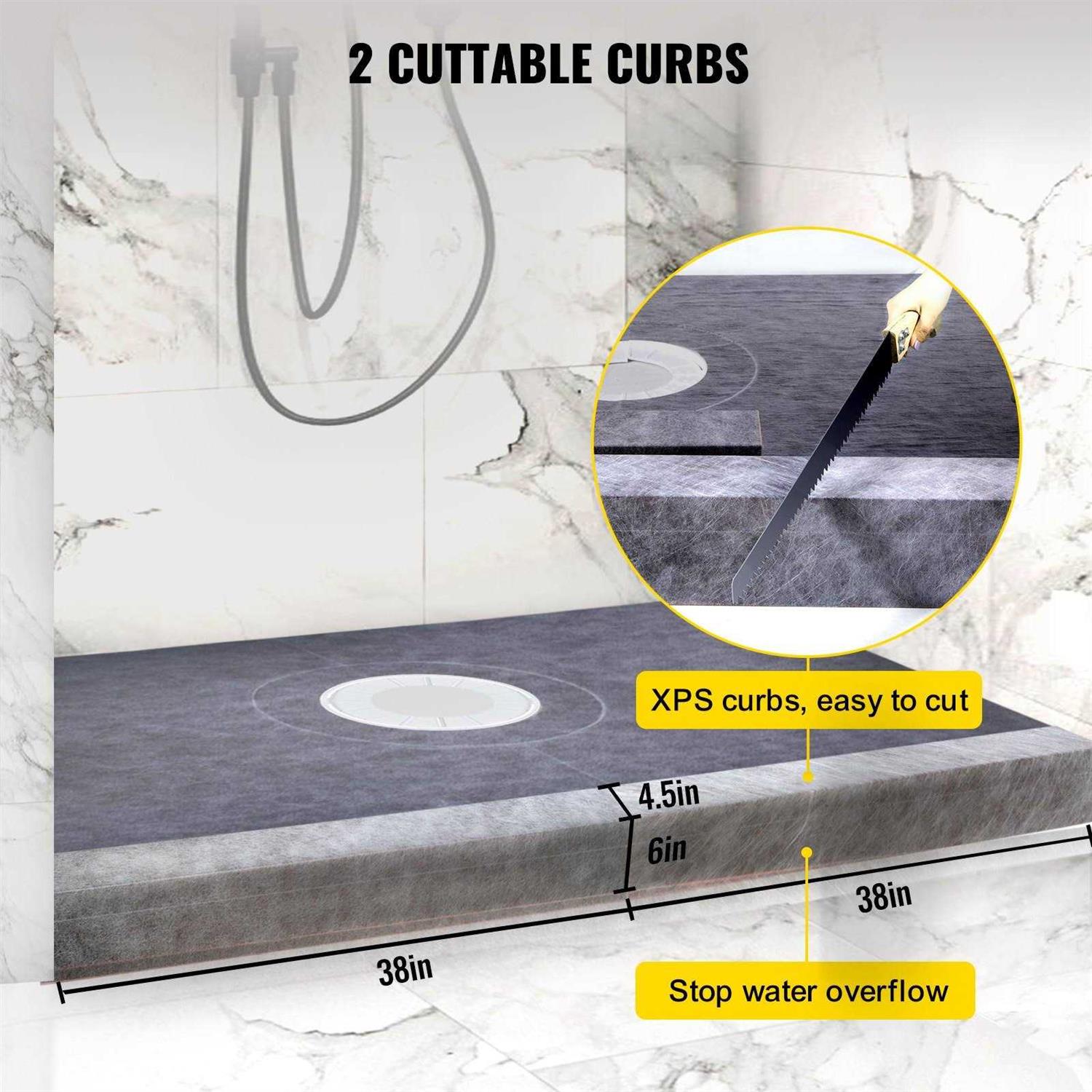Complete Drainage2 Cuttable Curbs – HDPE Membrane – Square-Tooth Trowel – Ease of Installation – Size of the Membrane: 121.3 sq ft/ 11.3 m,Material of the Flange: PVC,Size of the Shower Tray (W x L): 38 in x 60 in/ 965.2 mm x 1524 mm,Size of the Grate (W x L): 4 in x 4 in/ 10 cm x 10 cm,Model: VV-LYDZ-PVC3860Z,Material of the Grate: 304 Stainless Steel,Size of the Shower Curb (L x W x H): 38 in 4.5 in 6 in/ 965.2 mm 114.3 mm 152.4 mm – Complete Drainage2 Cuttable Curbs – HDPE Membrane – Square-Tooth Trowel – Ease of Installation – Size of the Membrane: 121.3 sq ft/ 11.3 m,Material of the Flange: PVC,Size of the Shower Tray (W x L): 38 in x 60 in/ 965.2 mm x 1524 mm,Size of the Grate (W x L): 4 in x 4 in/ 10 cm x 10 cm,Model: VV-LYDZ-PVC3860Z,Material of the Grate: 304 Stainless Steel,Size of the Shower Curb (L x W x H): 38 in 4.5 in 6 in/ 965.2 mm 114.3 mm 152.4 mm