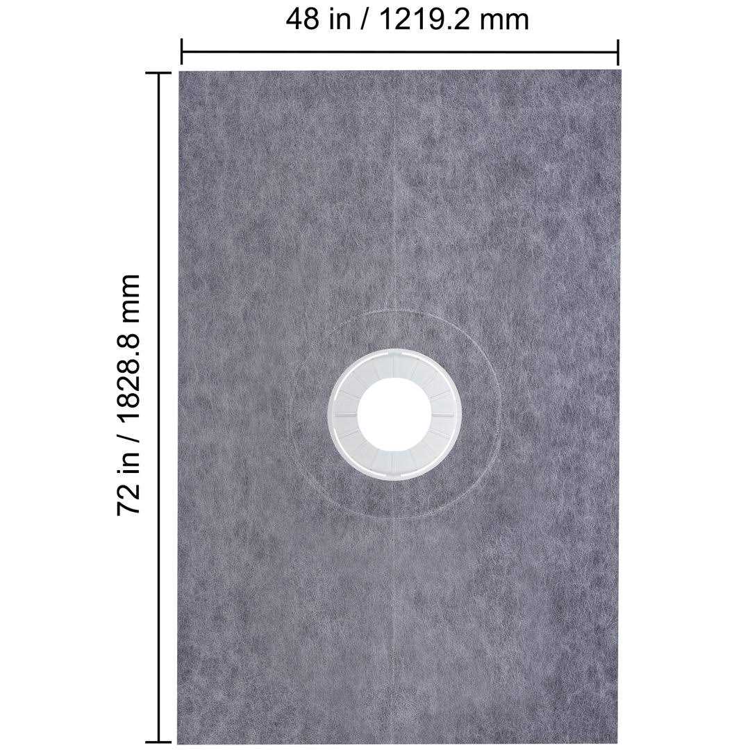 VEVOR 48 x 72 in. Waterproofing Shower Kit with 4 in. PVC Central Bonding Flange Polyethylene Shower Pan Liner for Tile, Gray