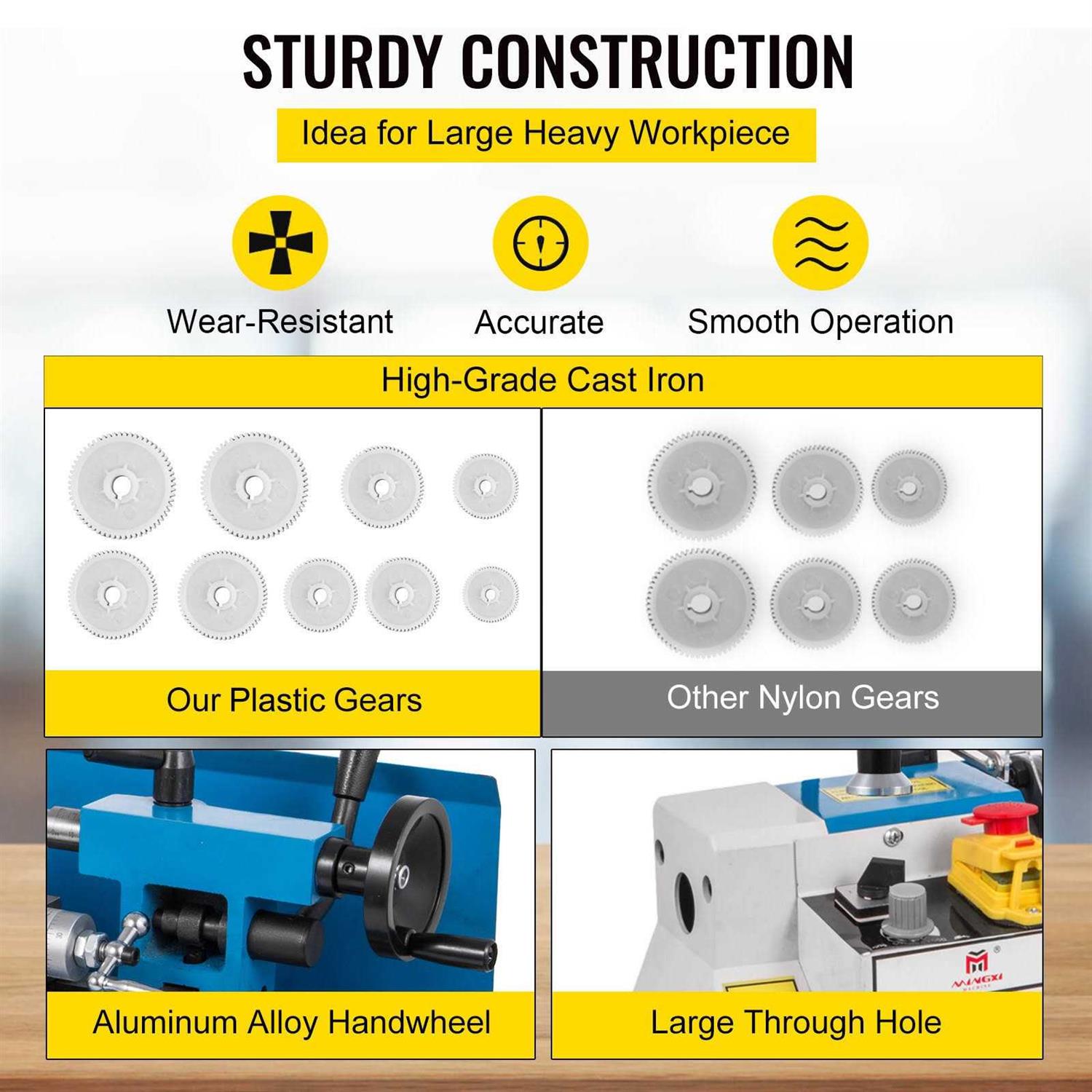 • Mini Metal Lathe 550w 7″”x14″” Precision With Lamp Nylon Gears Infinitely Variable
