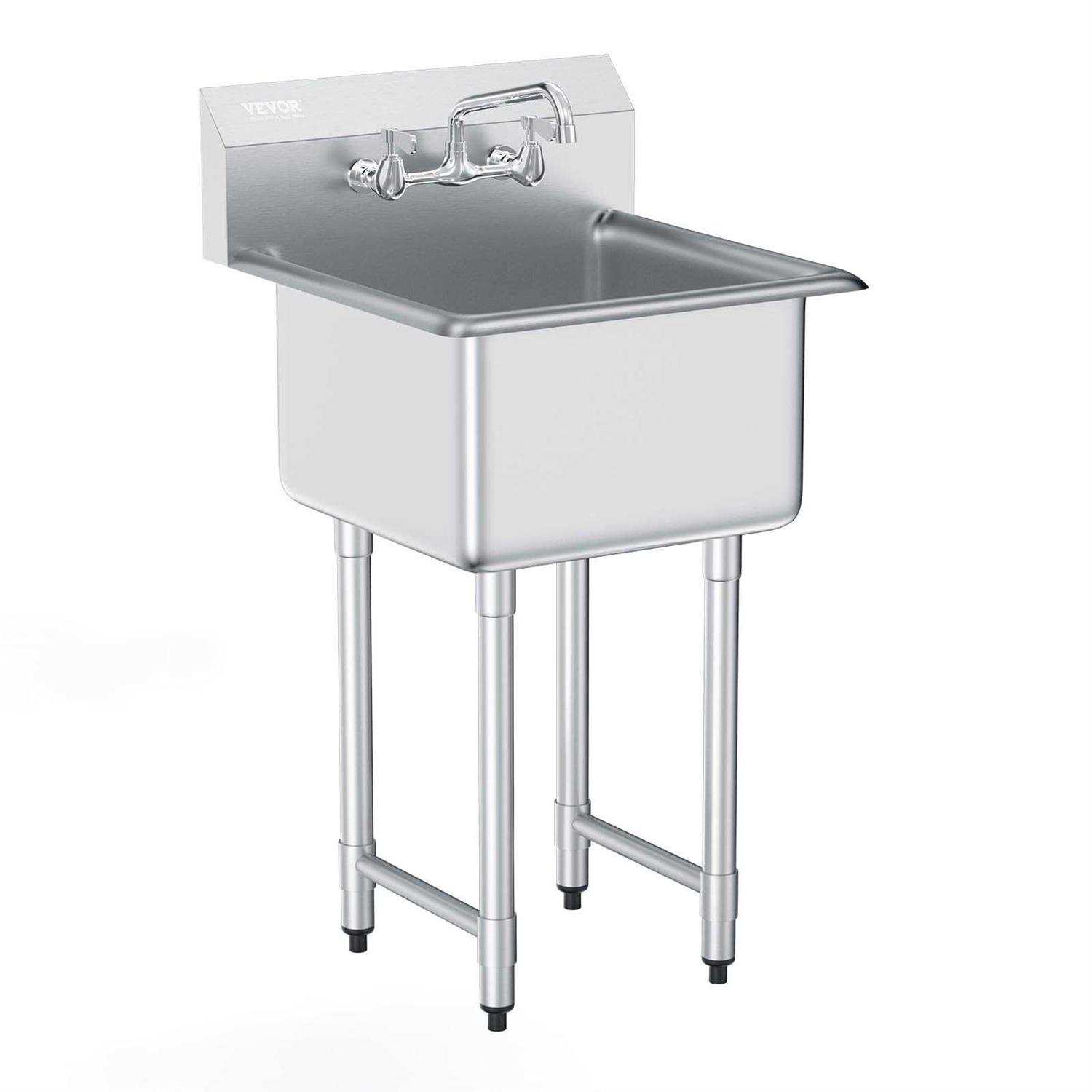 VEVOR Stainless Steel Prep & Utility Sink 1 Compartment Free Standing Small Sink Include Faucet & legs
