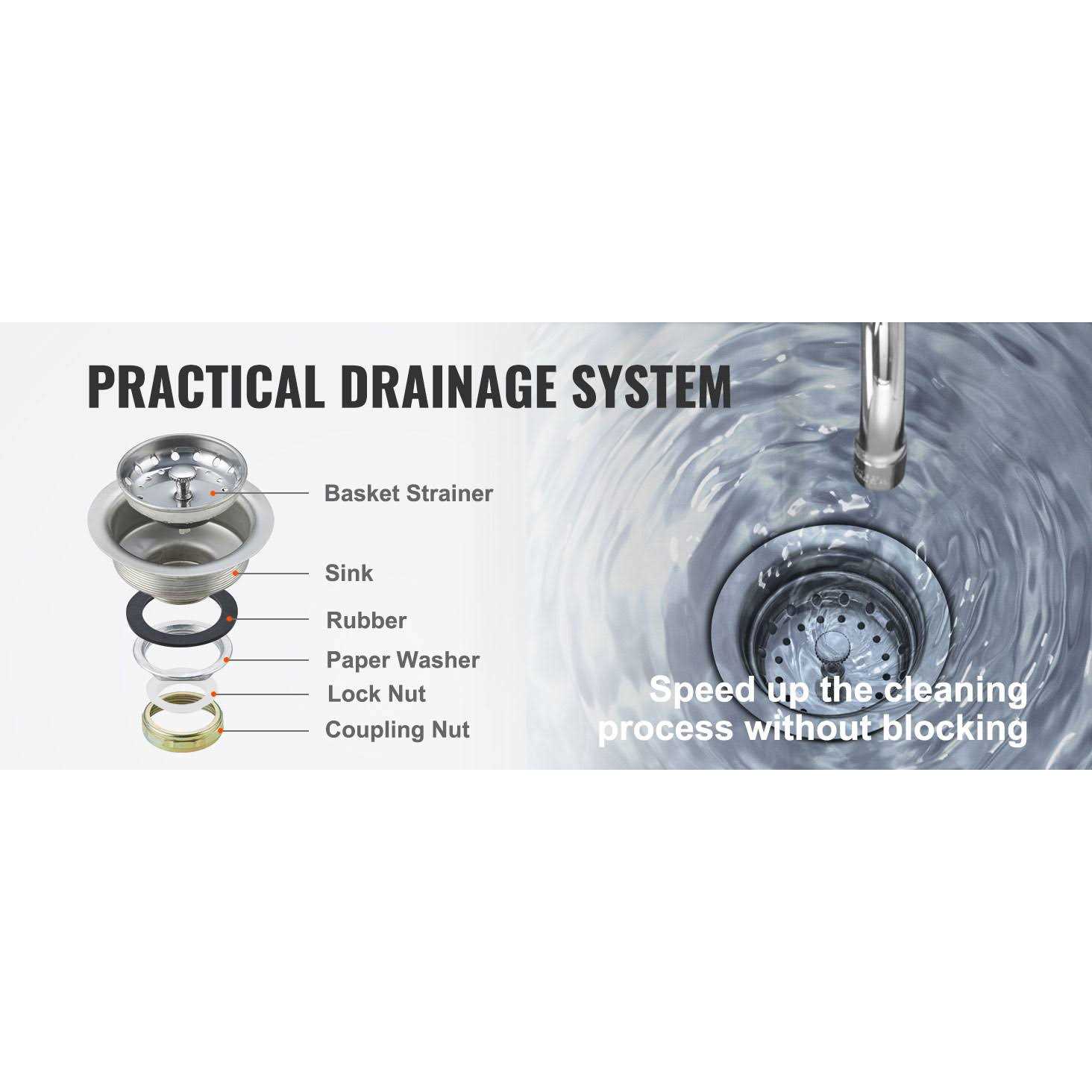 Heavy duty stainless steel construction: Made from high quality, durable and rust-resistant stainless steel. NSF certified for health protection. Leak-proof ceramic valve faucet: Ceramic valve core prevents leaks better than rubber seals and saves water. 360° rotatable and sturdy faucet. Robust and stable structure: Sturdy legs with levelers prevent floor scratches and ensure stability. Wall mount bracket offers added stability. Effective drainage system: Corrosion resistant basket strainer drain catches food debris to prevent clogging. High backsplash prevents splashes and keeps walls dry. Multi-purpose utility sink: Easy to assemble with all accessories. Designed for washing fruits, vegetables, dishes, laundry. Suits commercial kitchens, bars, restaurants, etc. Capacity: 11 gallons, 16 gallons or 32 gallons Package Contents: 1 Sink with 4 Legs 1 Faucet 1 Drain Basket 1 Wall Bracket Toolkit Manual