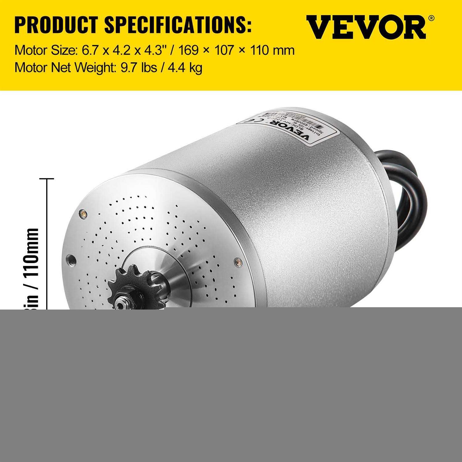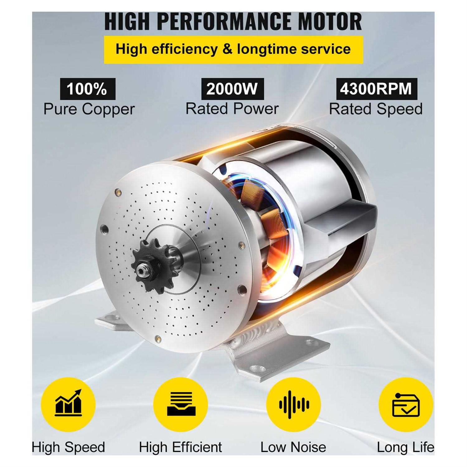 Vevorbrand Electric Brushless DC Motor,48V 2000W Brushless Electric Motor,4300 RPM High Speed Motor,w/ 34A Controller and Throttle Grip for Go Kart