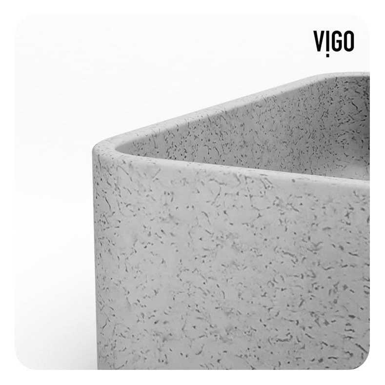 VIGO Vigo presents an elevated bathroom vessel sink handcrafted from Concrete Stone, a mixture of concrete and naturally sustainable materials, this sink is more durable and longer-lasting than traditional sink materials. Its neutral grey colour and gentle corners complement any bathroom vessel faucet, wall-mount faucet, and countertop. The Concrete Stone Collection is ideal for traditional, transitional, and modern bathrooms.