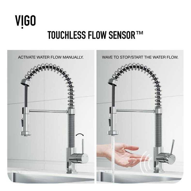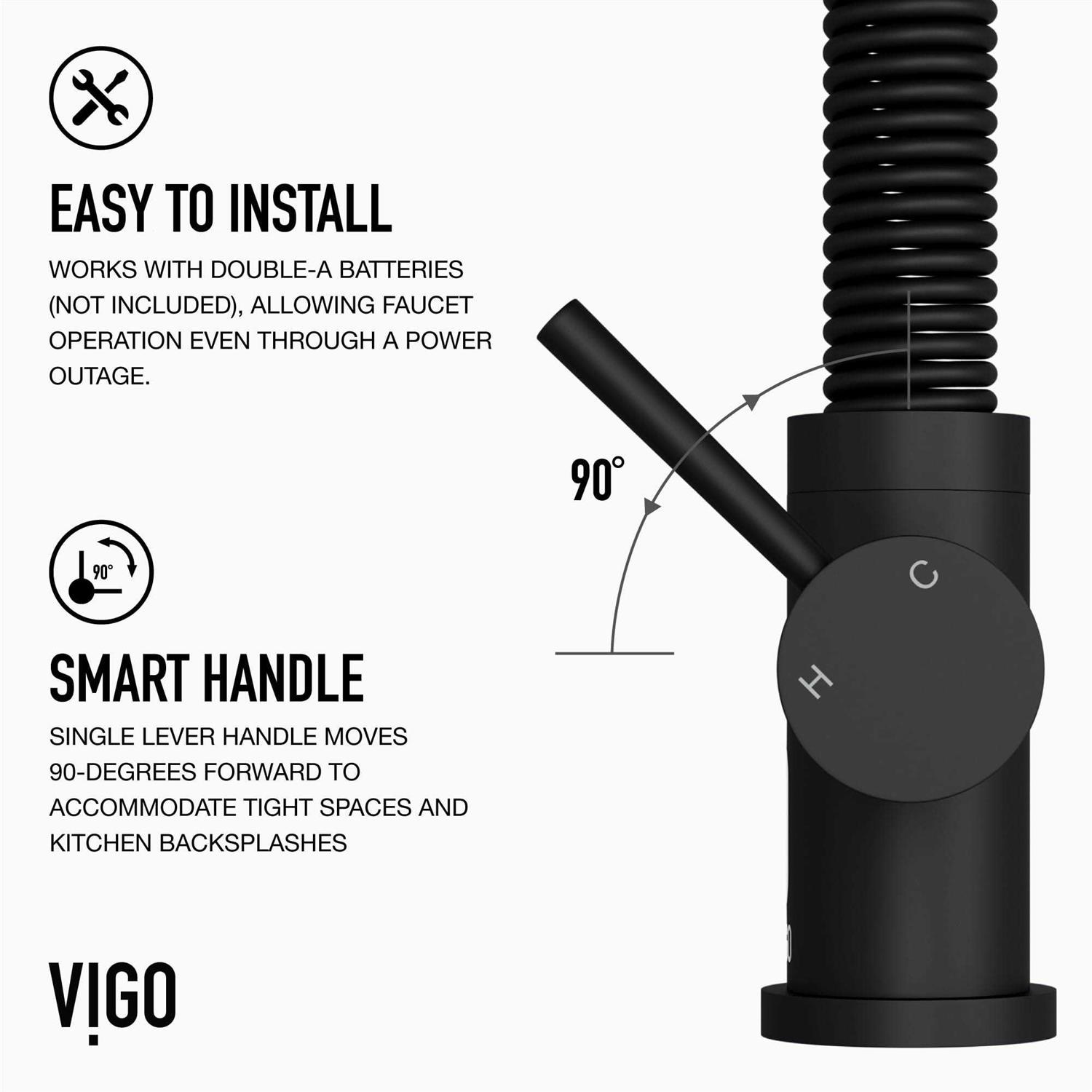 VIGO presents The Edison pull-down kitchen faucet, now available with touchless operation. The Edison by VIGO is a powerful yet beautiful kitchen faucet with a spray head that provides impressive performance with the touchless flow sensor for a more convenient and hygienic experience. The Edison is designed with a sleek high arc coil to protect the pull-down hose. VIGO’s premium matte black hardware finish lasts a lifetime, and that installation is effortless.