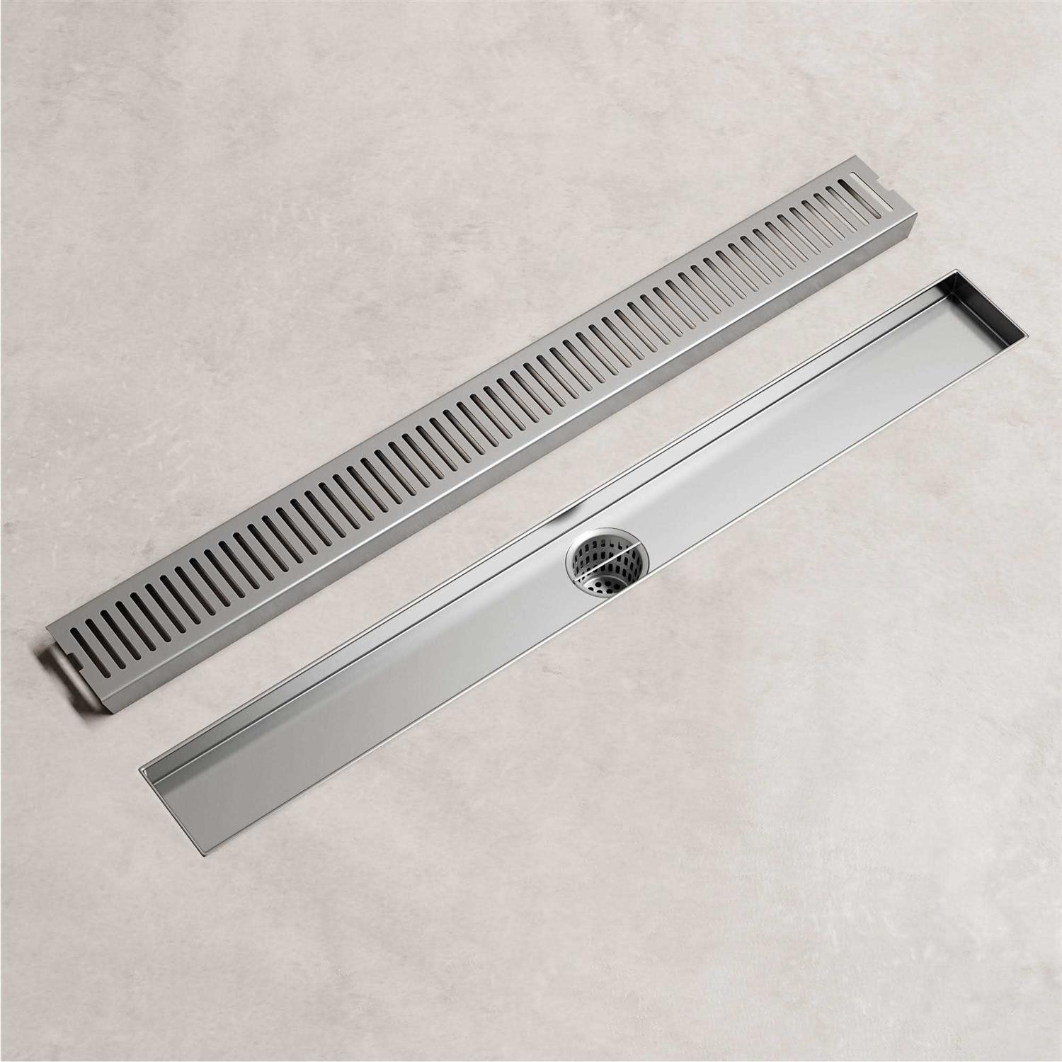 Enhance your shower experience with a linear shower drain by VIGO. Its attractive, sloped channel enables seamless and complete water drainage, while the rectangular drain grate prevents clogging. Its premium hardware finish allows easy cleaning and ensures long-lasting durability. Upgrade your bathroom shower experience with this rectangle shower drain from VIGO.