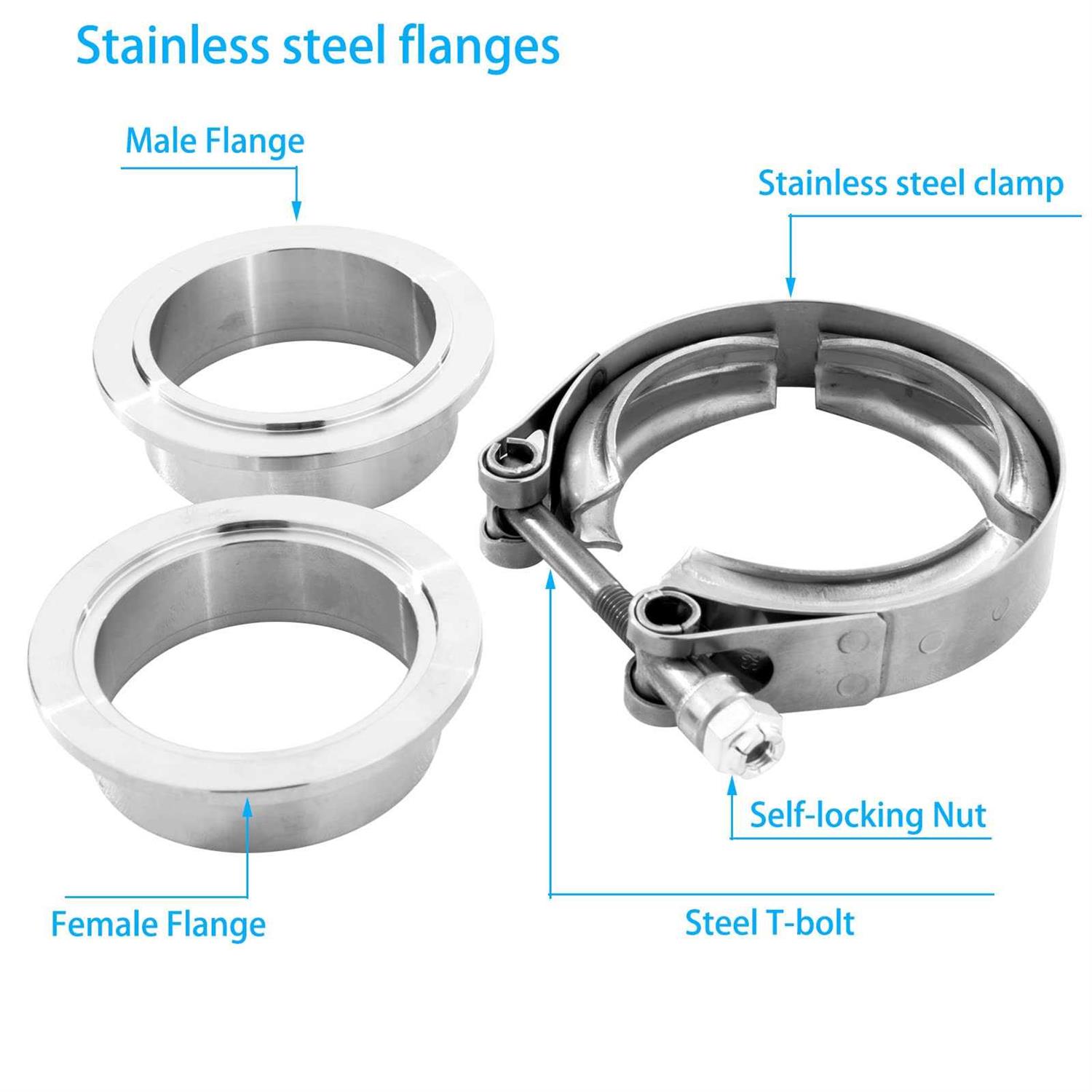 Vitonsbay Exhaust Clamp Band Clamp Coupling with Flange Male Female Stainless Steel