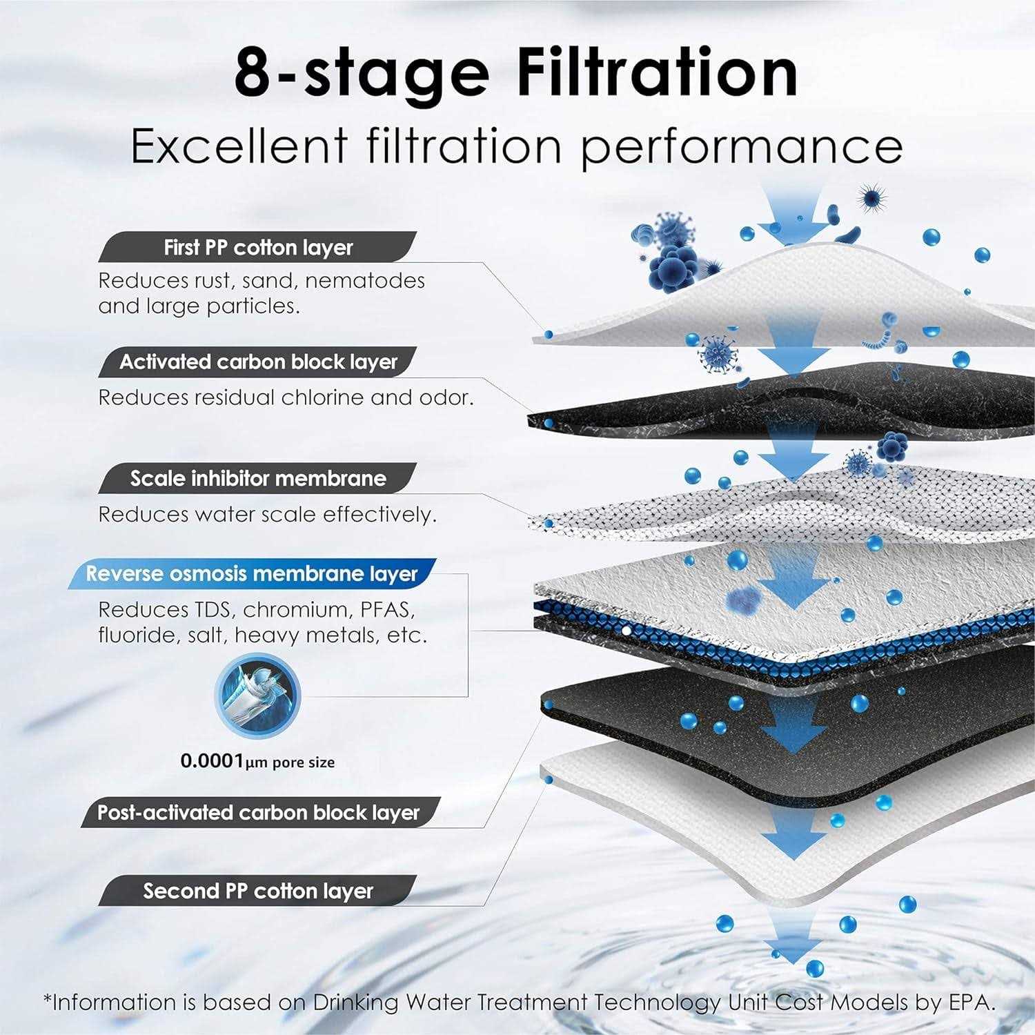 Waterdrop G3P600 Reverse Osmosis Water Filter Product Waterdrop G3P600 RO System WD-G3-N1CF filter WD-G3-N2RO filter WD-G3-N3CB filter Waterdrop G3P800 RO System Flow Rate 600 GPD- 800 GPD Filtration Stages 8 Stage- 9 Stage Pure to Drain Rate 2:1- 3:1 Display Filter lifespan & TDS- Filter lifespan & TDS 800 GPD Filtration Stages 8 Stage. 9 Stage Pure to Drain Rate 2:1. 3:1 Display Filter lifespan & TDS. Filter lifespan & TDS