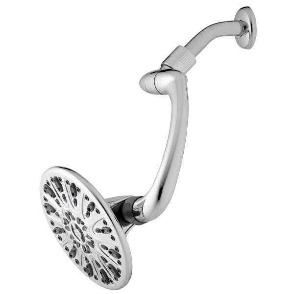 Opened Package: The Waterpik Sidewinder 6-Spray 7 in. Rainfall Showerhead in Chrome is the perfect addition to your shower routine. With its endlessly customizable features, you can easily adjust the height, angle, and distance of the shower spray with just one hand. This showerhead offers six different spray settings, including the invigorating PowerPulse Massage mode. The 1.8 GPM flow rate and advanced OptiFLOW technology ensure a powerful and satisfying shower experience. The large 7-inch drenching rain shower face provides full coverage, while the high-low adjustable arm with quickset auto-lock allows for easy customization. Installation is a breeze, so you can start enjoying the six different spray sensations in no time.