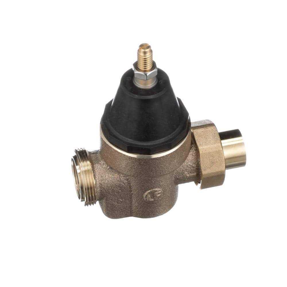 This 1 in. lead free water pressure reducing valve is designed to reduce incoming water pressure to protect plumbing systems and reduce water consumption for commercial, industrial and residential applications. The easy maintenance assembly consists of a lead free brass body construction, NPT threaded union inlet and NPT female outlet connection, stainless steel integral strainer, thermoplastic seat module, thermal expansion bypass and a sealed spring cage for waterworks pit installations. The temperature range is 33 to 180 degree F (0.5 to 82 degree C). Suitable for up to 400 psi (27.6 bar), the pressure range can be adjusted from 25 to 75 psi (172 to 517 kPa) with the standard setting at 50 psi (345 kPa).