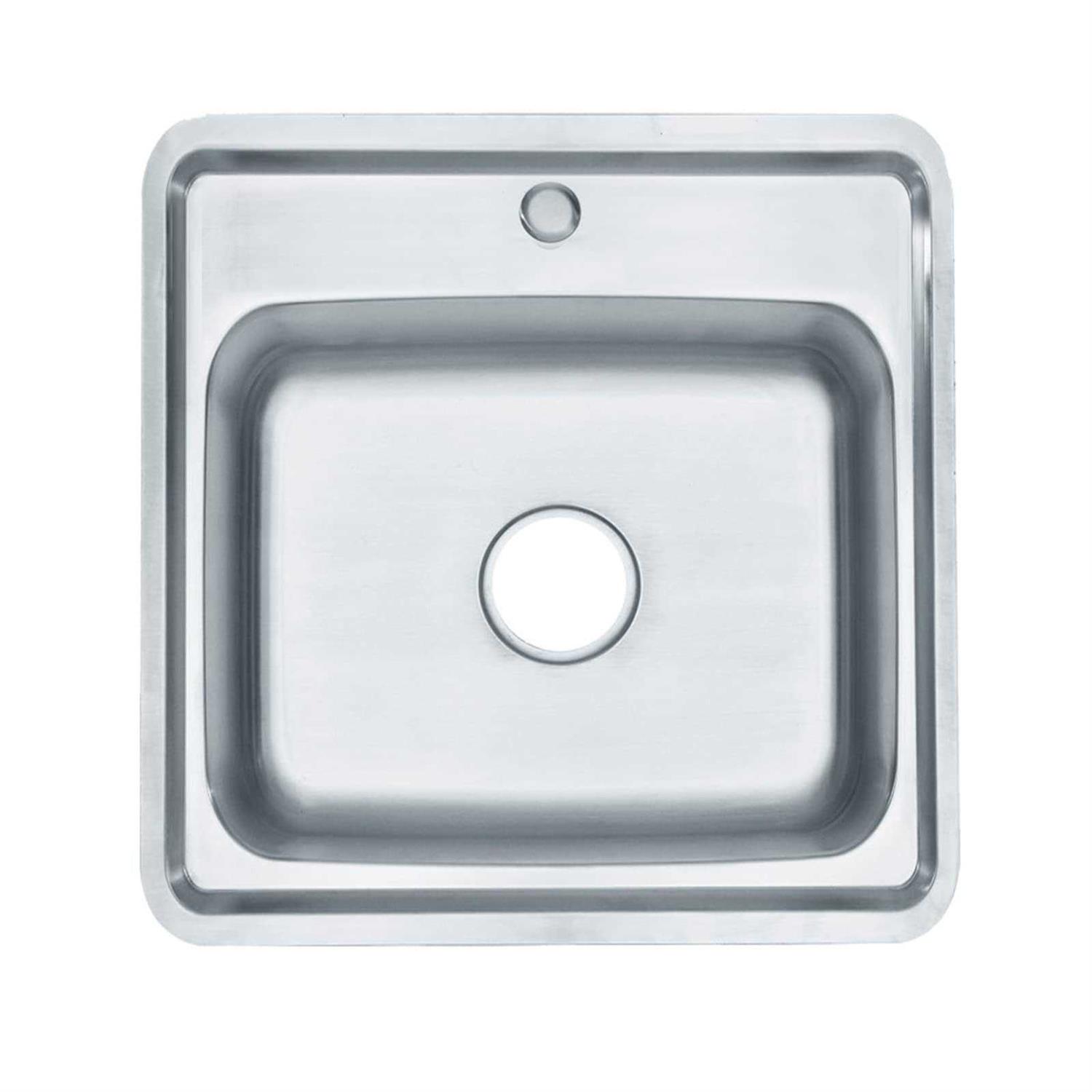 This timeless sink offers 22 gauge single-bowl topmount sink with a faucet hole in the middle. This stylish sink features a matte finish.