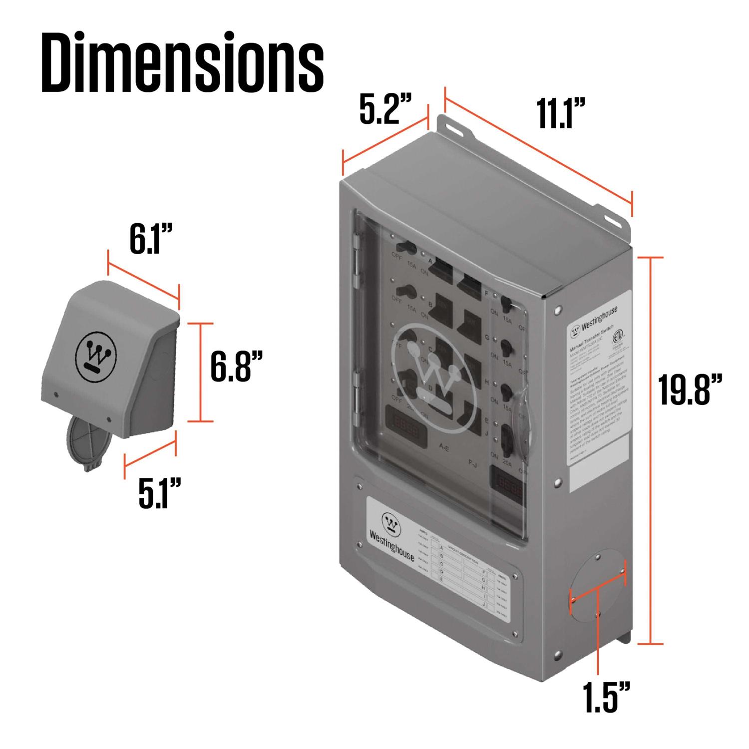 Be the first to review “Westinghouse 30 Amp Transfer Switch Kit with 8 Circuits WMTS30A10C”