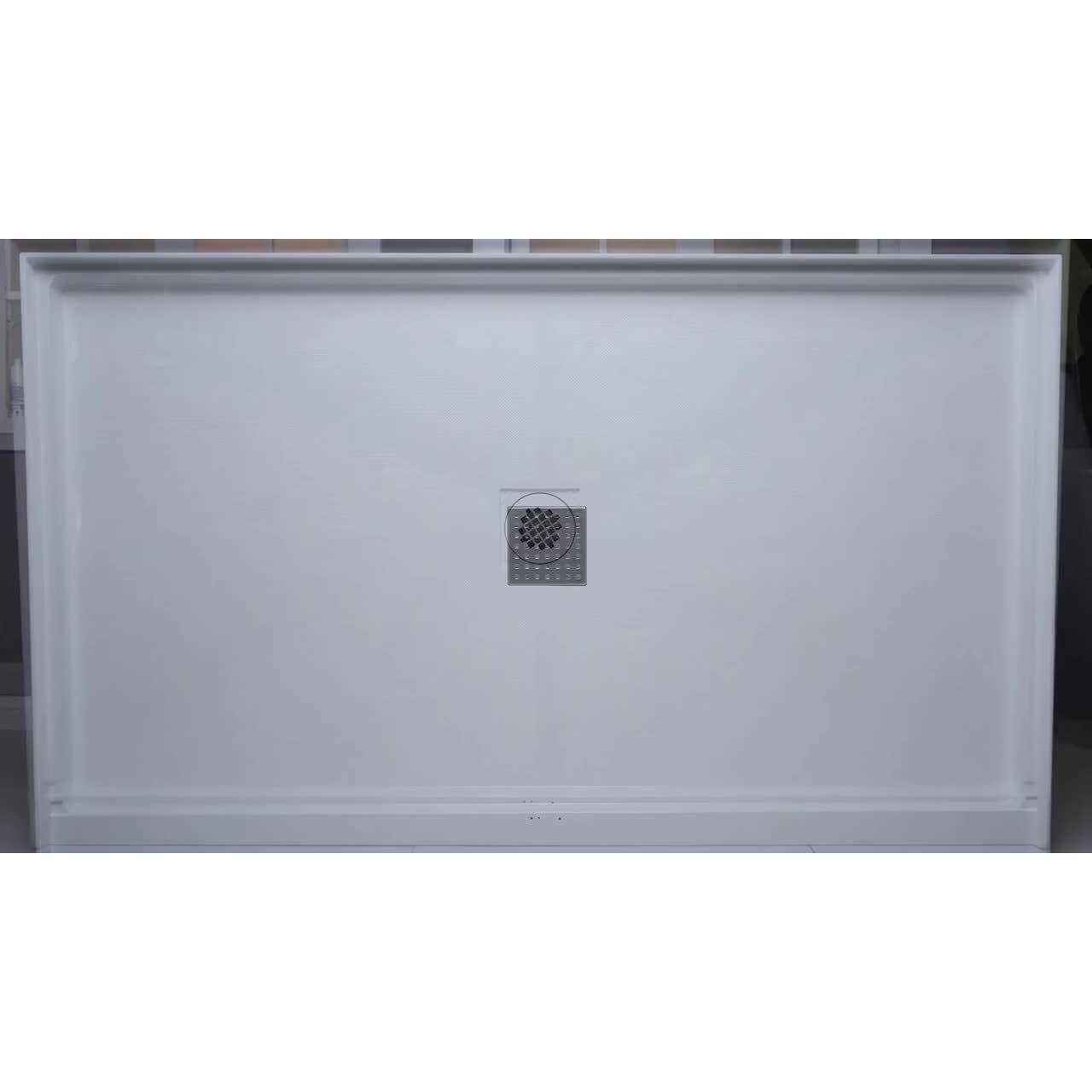 WOODBRIDGE 60 in. L x Solid Surface Alcove Shower Pan Base Drain in White