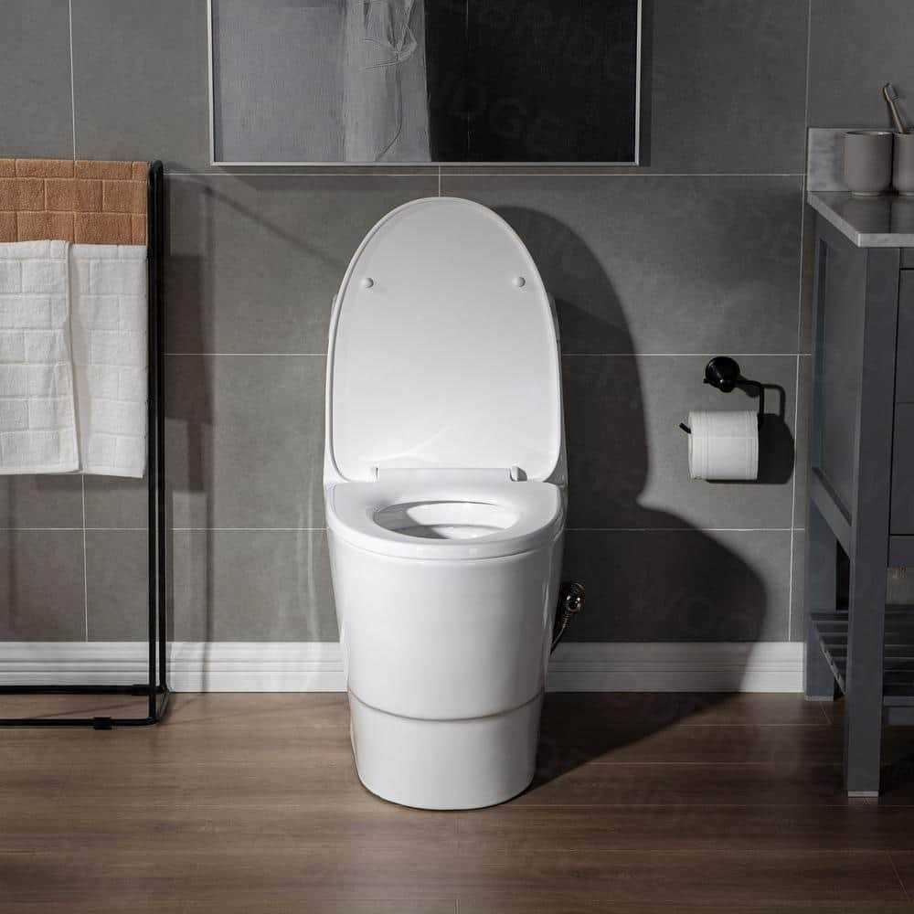 Woodbridge Everette 1-Piece 1.28GPF Dual Flush Elongated Toilet in White with Map Flush 1000 G and Toilet Seat Included