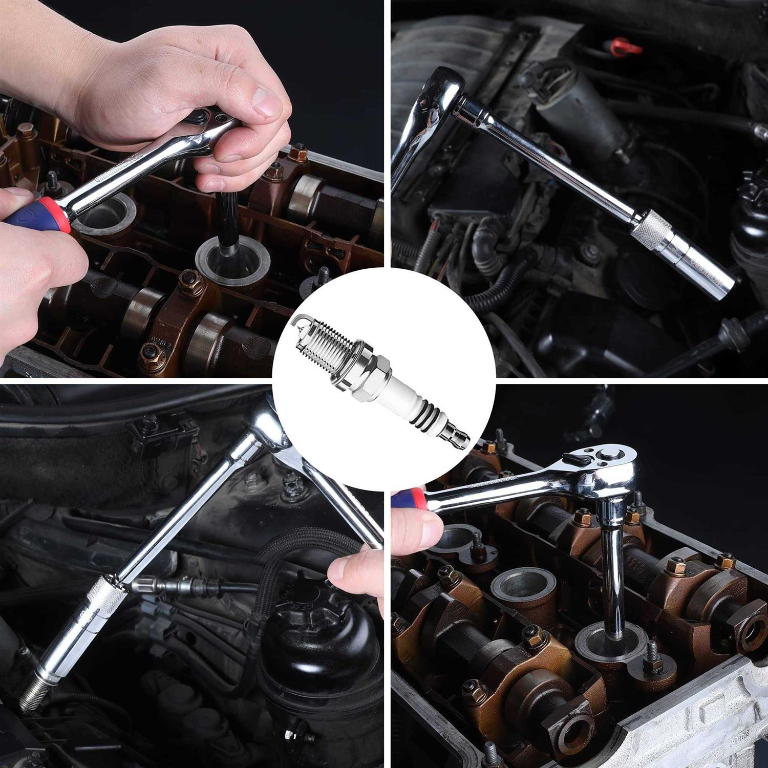 WorkPro 5/8″ Magnetic Spark Plug Socket with Magnetic Design, Swivel Thin Wall Spark Plug Socket, 3/8″ Drive x 8″ Total Length, 360 Degree Swivel,
