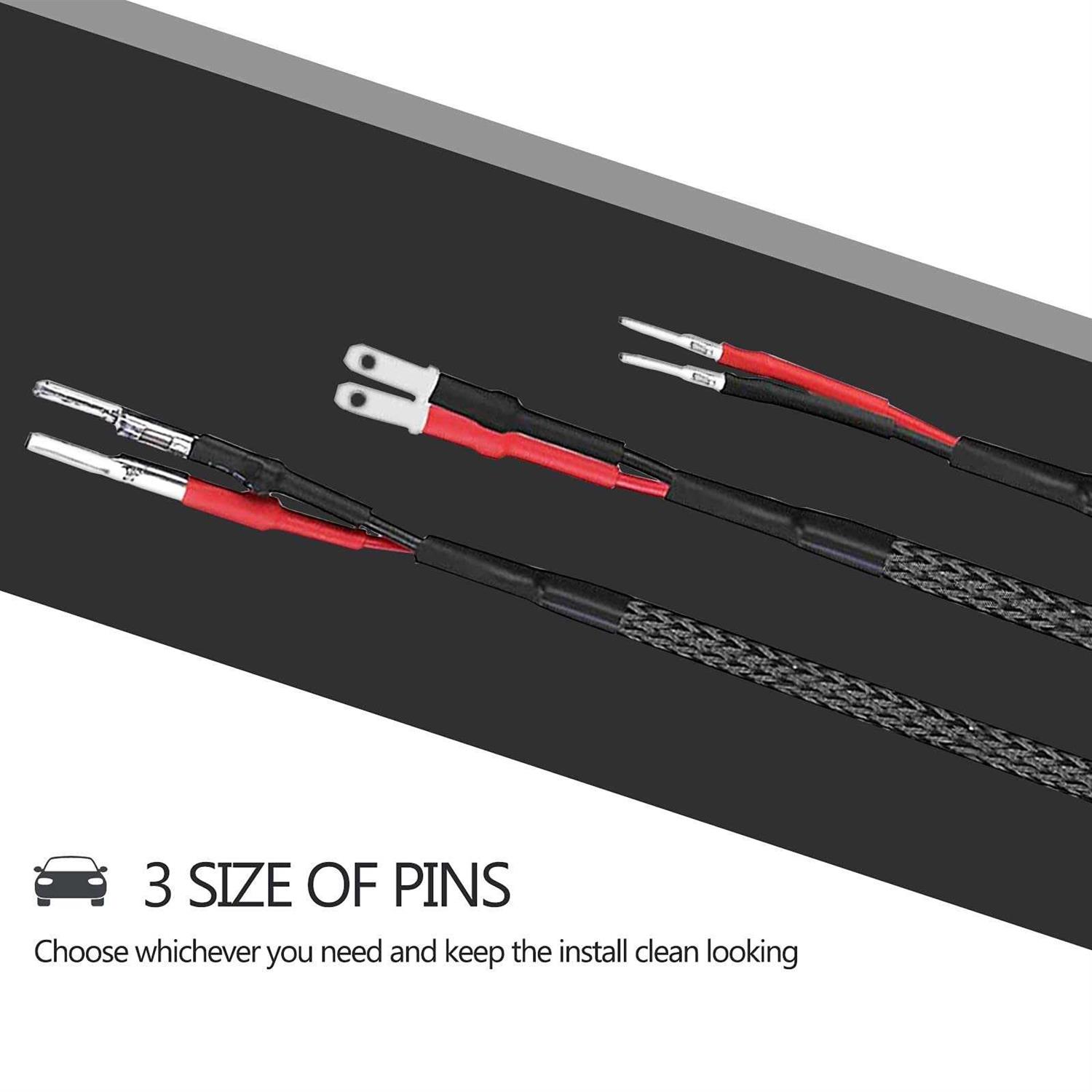 - This set of mirror wire power cord includes 3 size of pins, choose whichever you need and keep the install clean looking