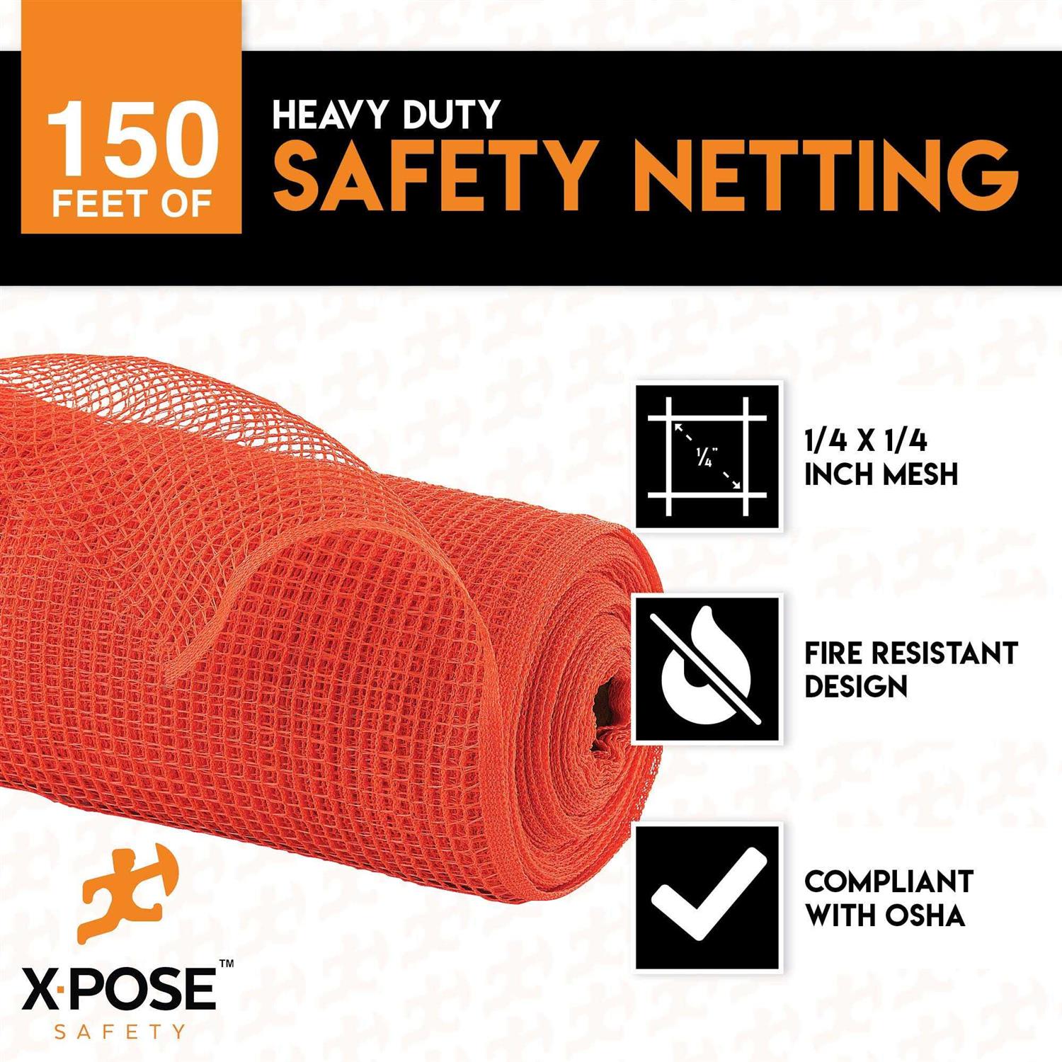 Xpose Safety Construction Safety Debris Netting – 150 ft Temporary Material Roll 1/4 in Mesh Scaffold Net Enclosure Barricade Visibility Barrier Fenci
