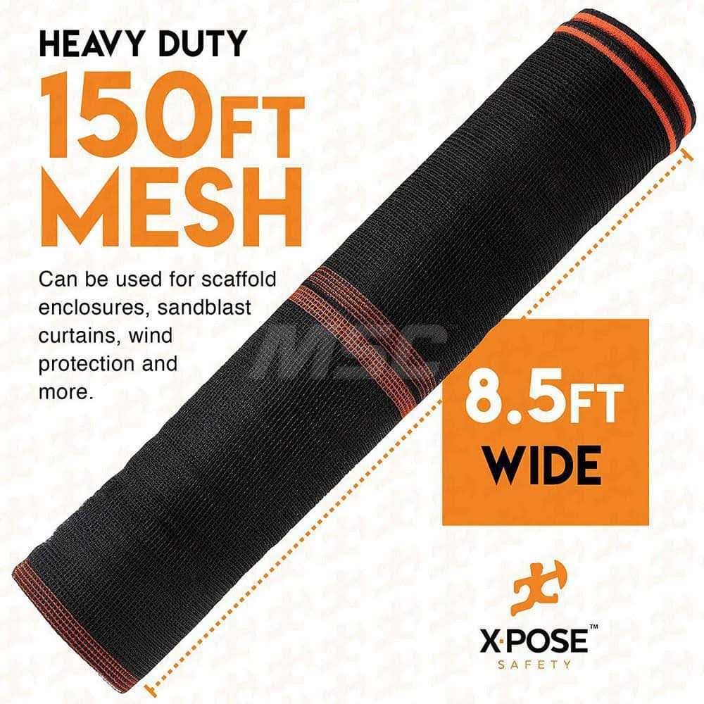 Ensure safety at your jobsite with this Xpose Safety netting! This netting wraps around a building or jobsite to protect workers, pedestrians, and nearby properties from loose debris. This makes it ideal for windy conditions and work areas susceptible to scattered debris. It can also be used as a scaffold enclosure, safety fence, sandblast curtain, or for wind protection. This fence is made of plastic mesh netting with 1/4″ openings, and it has knitted polyethylene threads and a reinforced border. This netting features a neutral black color. It remains flexible even in cold weather to prevent cracking. The fire-retardant material helps prevent the start or spread of fire, ensuring ultimate safety at your jobsite. Thanks to the advanced reinforced buttonhole design, this netting is easy to install and provides a superior performance in any environment or jobsite. This netting is designed for heavy-duty protection, and it is compliant with OSHA requirements and NYC Local Law 61. Overall Dimensions: Length: 150′ Width: 8′ 6″ NFRB-86150-X From Xpose Safety