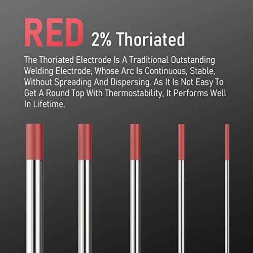 YesWelder TIG Welding Tungsten Electrode 2% Thoriated 1/16″ x 7″ (Red, WT20/EWTh-2) 10-pk
