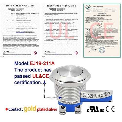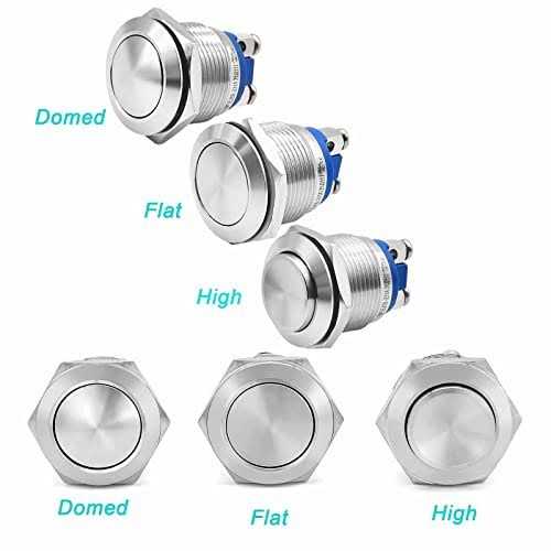 Pushbutton Switches by ZJWZJH. Details:Package include : 2* Metal Push Button Switch What’s Momentary Switch: Push and Hold-ON, Release-OFF What’s the Screw Terminal: Easy to install,it has non-solder connections screw-type terminal to make fitting very easy. Purpose: universal fit all 12v Car SUV Truck Conversion Van RV Boat Yatch Great for Electroma Starter Relay Horn Button Switch PC Power Switch or Any Circult Controls. What’s Note: -The project you are going to be used for, don’t let current go above 3 Amps. This product has Three kinds of heads: flat round, high round and Domed round, and two colors: silver and gold. Specifications: -Head diameter: 0.87″ (22mm). -Mountinghole size: 0.75″ (19mm) Thread Depth: 0.51″( 13mm) -Switch combination:1No SPST. -Operation types: Momentary -Swritch rating:3A/250VAC -Shell material:Stainless Steel and Aluminium alloy. -Operation pressure: about 4N .