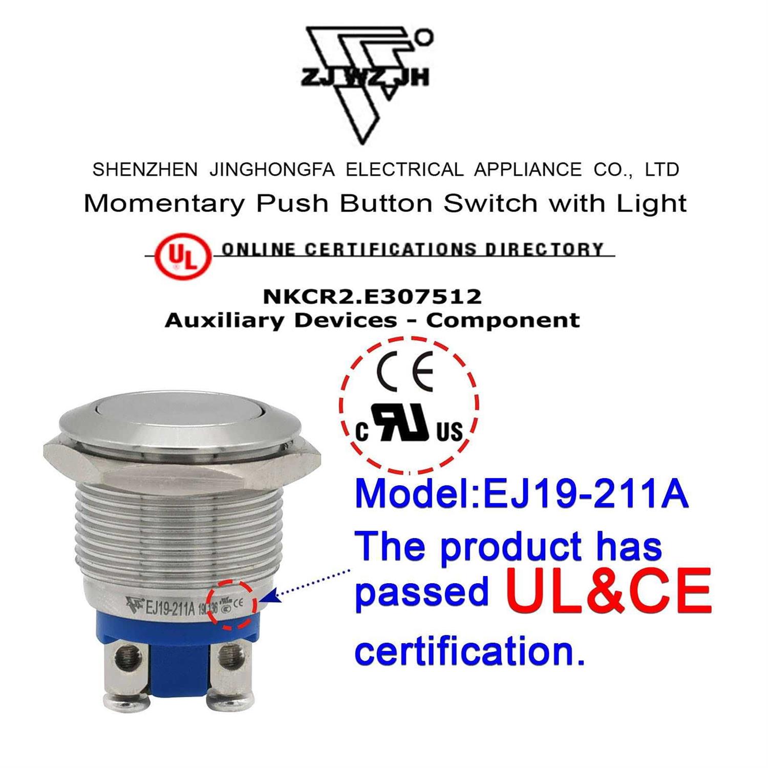 ZJWZJH UL Certified 2PCS Push Button Switch Starter Switch 19mm Momentary IP67 Waterproof 3/4 Mounting Hole 12V 24V 110V 120V 1NO Screw Terminal